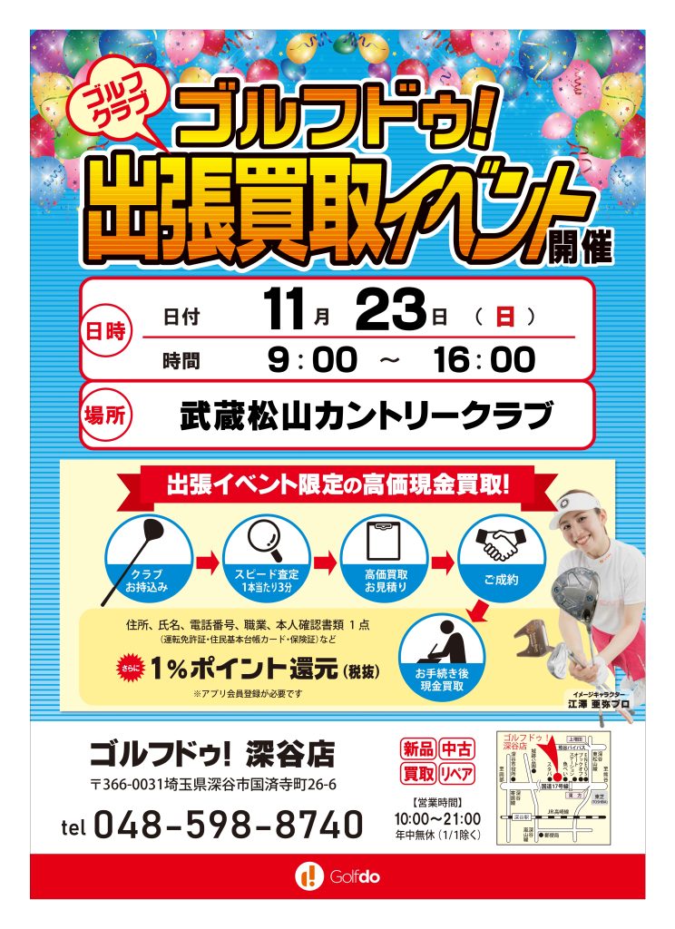 <イベント> ゴルフドゥ!出張買取イベント開催 いつも当クラブをご利用いただきありがとうございます。<第3弾>2025年11月23日(日)に開催が決定いたしました。この機会にぜひご利用ください。※なおご利用は当日ご来場の方(ノンプレーのメンバー可)に限ります。