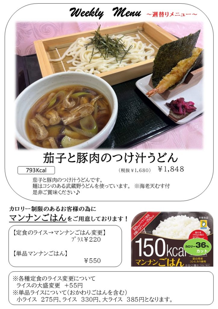 今週の週替わりランチです(^^♪